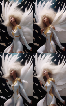 https://...png https://...png upside-down falling angel girl, beautiful with golden hair, green eyes and white armor, complete with cinematic lighting and falling feathers around her sideview closeup on face red lips